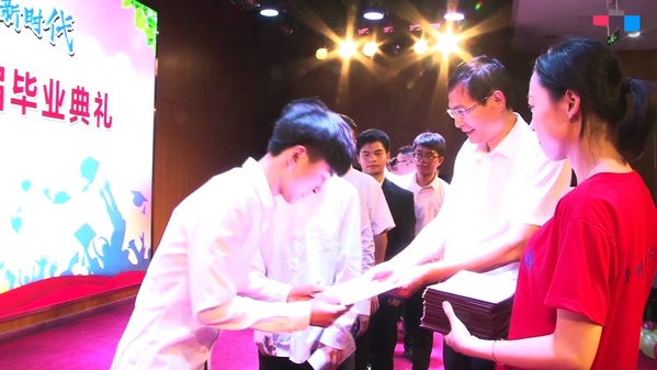 看今朝,感恩前行。毕业不忘感恩,巫书记和王胜老师合唱《我的中国心》,献礼建国70周年,感恩祖国给我们带来的美好生活,将毕业典礼推向一个高潮。班主任带来朗诵《致青春》,向同学们表达了深深的关爱之情。同学们向老师们献花并深情拥抱以感恩老师的栽培与教导。