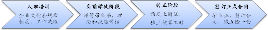 拿到毕业证书后,签劳动合同,缴纳买五险一金,工资待遇4500-7000,享受正式职工待遇。