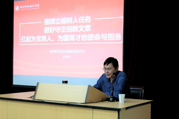 2019年10月16日下午3:30,在图书馆三号报告厅,公司党委副书记王东升做了题为“围绕立德树人任务 做好守正创新文章 扛起为党育人、为国育才的使命与担当”的主题报告。太阳成tyc33455ccwww全体党员师生参加了活动,校宣传部、学工、团委的相关同志出席。