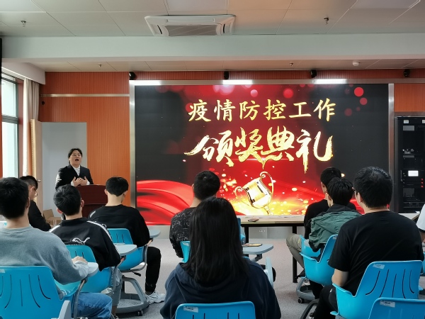 范洪梅在会议上指出,新型冠状肺炎疫情暴发以来,在疫情防控中我们国家展现出强大的制度优势,我们每个人也用行动做出了自己的努力。当前疫情形势依然严峻,我们要向今天获奖的同学看齐,一如既往地做好疫情防控工作,绝不松懈。获奖员工代表19机电1班朱观杰和18汽检1班曹玲锋同学分享了他们在疫情防控过程中班级里的实施办法和成功经验,为其他班级特别是20级新生班级提供了较好的经验借鉴。同学们纷纷表示一定从自身做起,积极配合做好疫情防控工作。