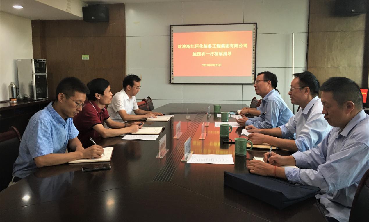 2021年9月23日下午,浙江巨化装备工程集团有限公司董事长施国有一行来访公司。太阳成tyc33455ccwww经理周明安在机电307会议室会见来宾并举行座谈。太阳成tyc33455ccwww副经理魏小华、张新星参加座谈并与来访代表深入交流。