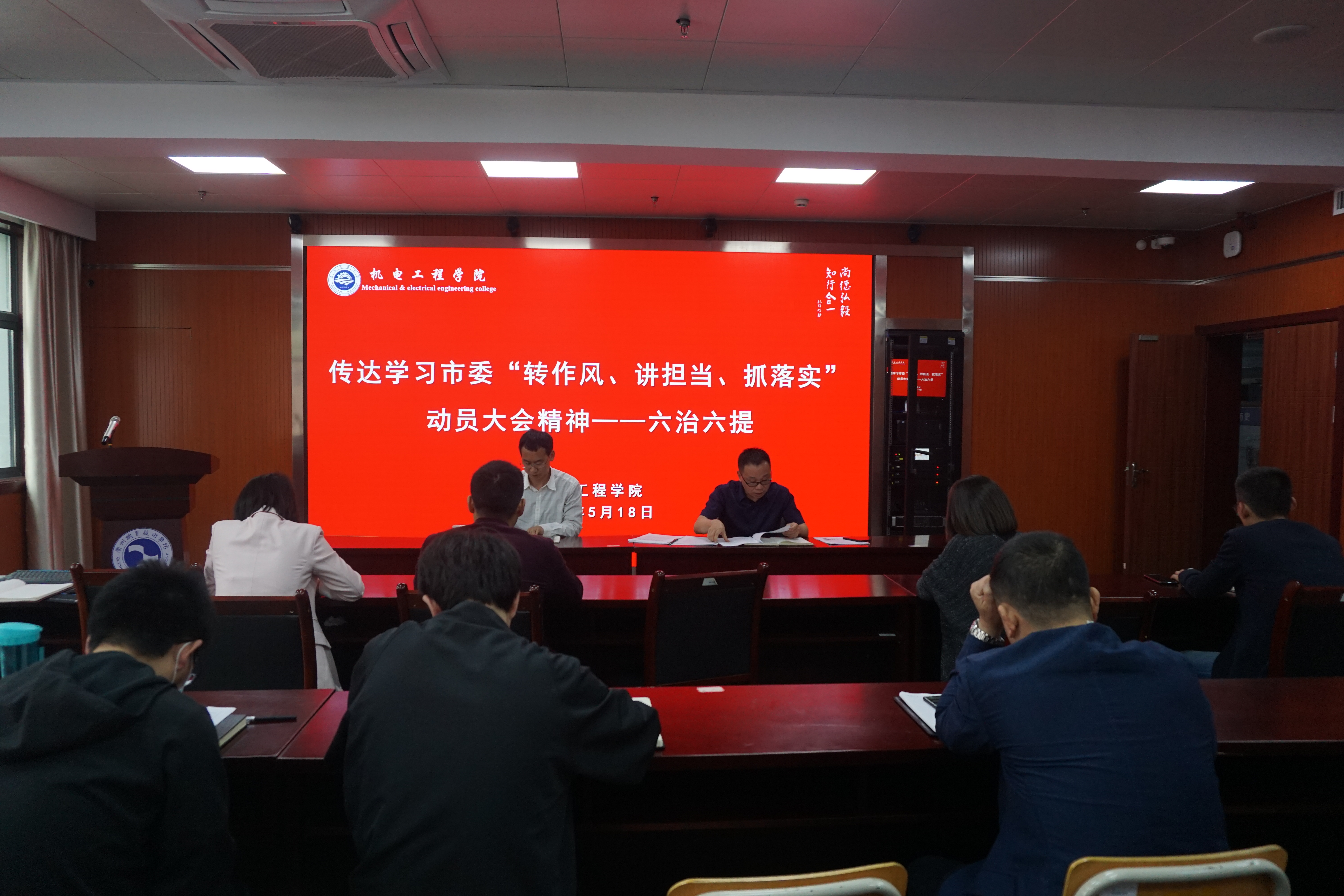 5月18日下午,太阳成tyc33455ccwww组织召开全体教职工集中政治理论学习会议,会议由机电党总支书记朱峻主持。