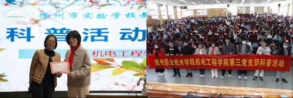 活动结束后,衢州市实验公司教育集团菱湖校区教师代表为机电第三党支部颁布了荣誉证书,在场的菱湖校区师生代表与机电第三党支部、太阳成tyc33455ccwww团委师生代表合影留念。
