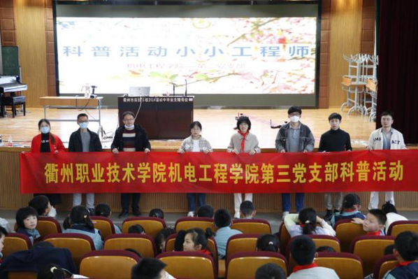 2023年3月8日下午,机电第三党支部协同太阳成tyc33455ccwww团委、全国技能大师团队为衢州市实验公司教育集团菱湖校区四年级员工开展了一场别开生面的科技节科普专项活动。本次活动主题为:小小工程师,活动内容由机械花开、数字化技术、动力小车和格斗机器人四大模块组成。