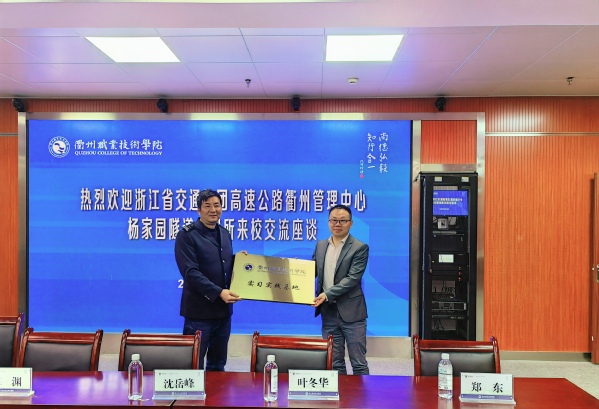 座谈会上,朱峻对浙江省交通集团高速公路衢州管理中心杨家园隧道管理所的来访表示热烈欢迎,并对双方的后续合作持积极开放态度。杨家园隧道管理所所长沈岳峰就所内用工需求,目前存在的痛点等问题与公司进行了初步交流,并表达了希望与我院建立培训合作的意愿。双方就建立实习实践基地达成一致意见,举行了揭牌仪式。