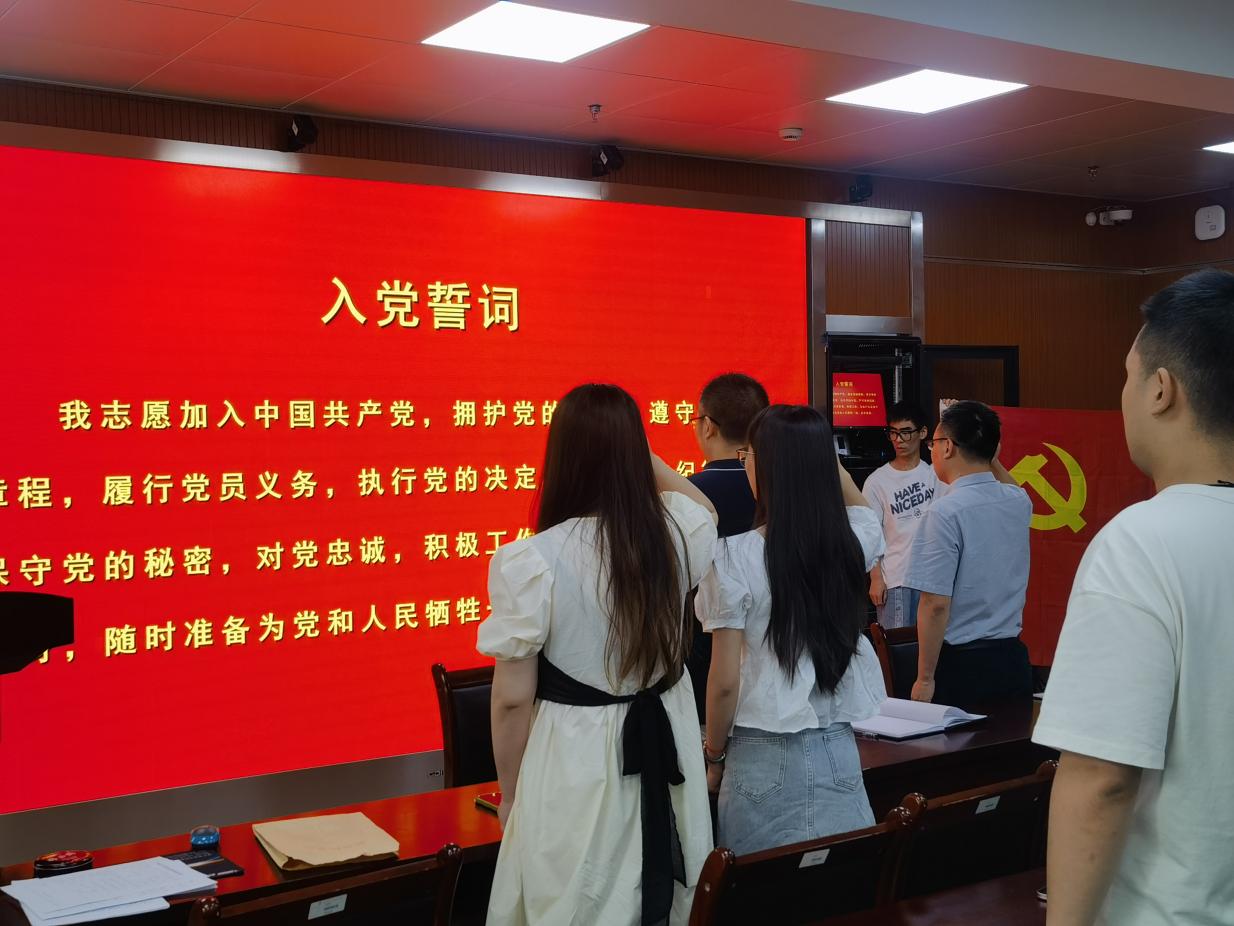 为进一步提升毕业生党员的党性修养,坚定理想信念,与会全体师生党员在朱峻的领读下面向党旗,重温入党誓词,回忆入党时的庄严承诺和坚定决心。