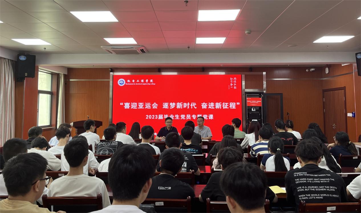 朱峻为在场的毕业生党员上了主题为“喜迎亚运会 逐梦新时代 奋进新征程”最后一趟党课,他希望毕业生党员同志们能够结合即将到来的杭州亚运会,发扬党的优良传统,牢记全心全意为人民服务的宗旨,充分发挥党员在志愿服务中的先锋模范作用,在今后在各自的工作岗位上倍加努力的工作,无愧于共产党员的光荣称号!