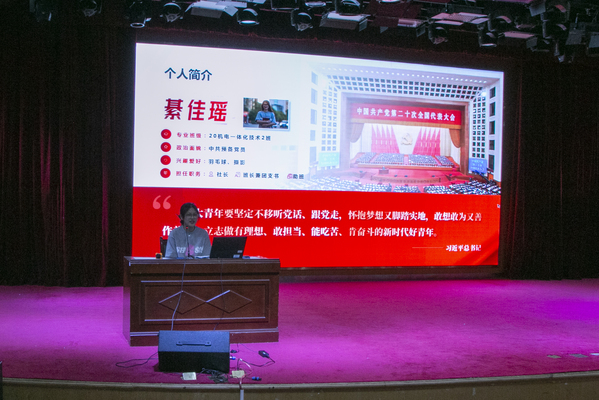 国家奖学金获得者20机电2班班长綦佳瑶为同学们分享了大学的学习、生活、竞赛、实践等经历,用自己的大学成长经历与同学们探讨努力学习的意义。她勉励学弟学妹们明确目标,珍惜时光,奋发拼搏,成就更好的自己。