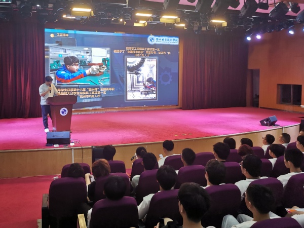浙江上洋机械股份有限公司高级工程师、总经理黄剑虹通过自身学习、工作经历,鼓励新生大学阶段要积极参与院校组织的各类活动,在大学阶段拓宽视野,掌握更多的专业技能和专业知识,全面提升综合素质。