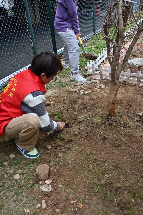 大家翻松土壤、平整土地、播撒种子、浇水灌溉,学习种植玉米、土豆、石榴等植物,了解植物生长习性和养护办法。以亲身经历感受一粥一饭的来之不易,感悟劳动的收货与意义。