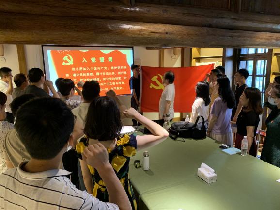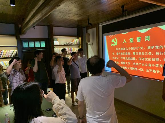参观结束后,在大陈村萃文中学旧址,在机电工程公司党总支书记朱峻同志领誓下,42位党员教师们重温了入党誓词,铭记那一年许下的誓言:“我志愿加入中国共产党……随时准备为党和人民牺牲一切,永不叛党。”铿锵恢宏的誓词,强烈震撼着在场的每一位党员,一字一句,神圣而豪迈,铮铮誓言,体现了党员同志们对中国共产党的无限忠诚,坚定了入党使命,奋斗初心。