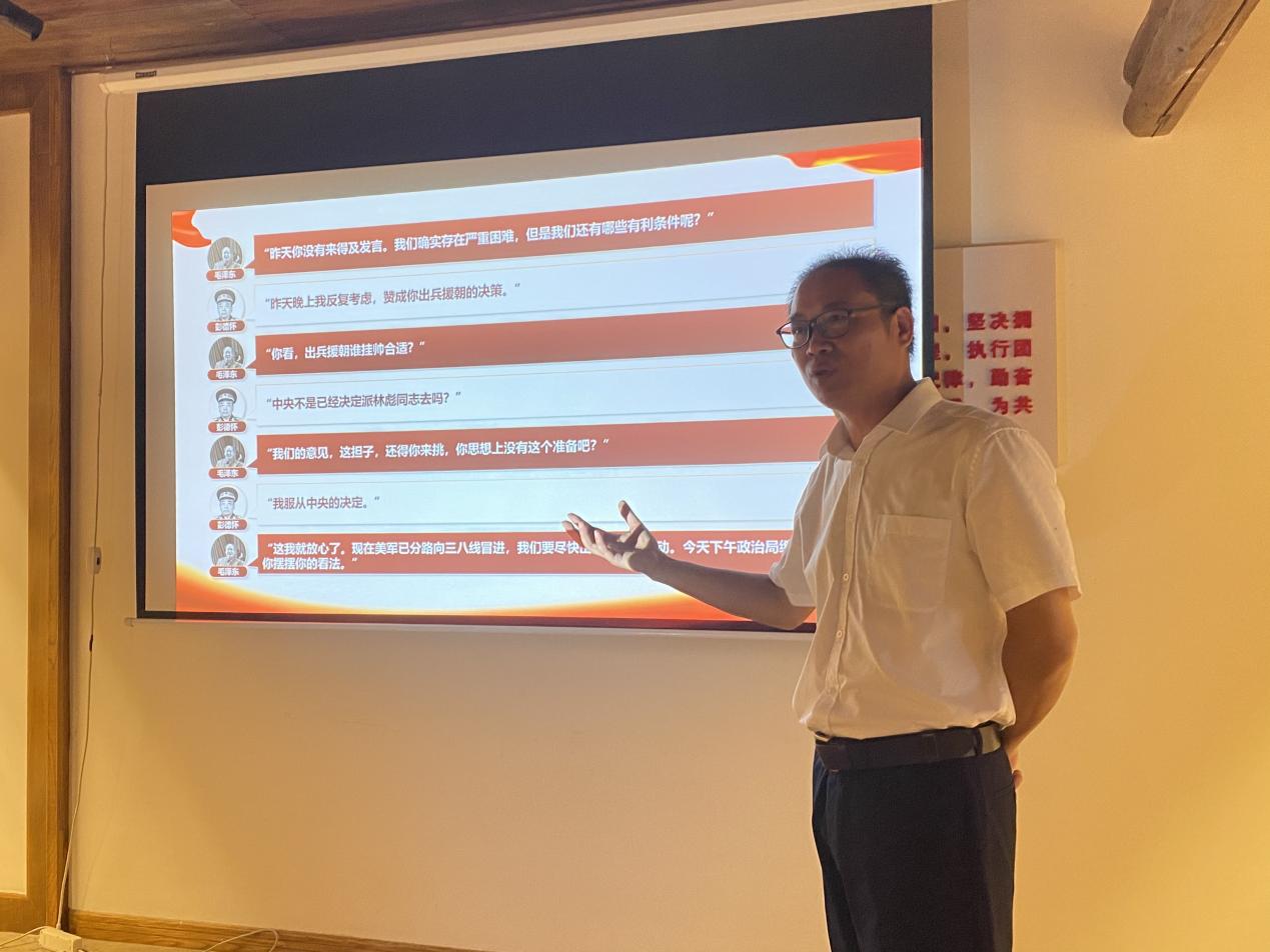 宣誓结束后,衢州职业技术公司党委委员、宣传部部长孔庆红同志为在座党员讲了一堂生动的党课,带大家领略了“从跨过鸭绿江,看名族复兴”的党史故事,了解中华民族伟大复兴历史进程的大跨越 ,引导大家学史明理、学史增信、学史崇德、学史力行,进一步激发党员的内在动力。他说,今年正是中国共产党建党100周年,因此组织到纪念馆参观,就是要表达对长眠于仙霞岭下无数革命先烈的深切怀念,学习革命先辈“革命理想高于天”的坚定信念、爱国爱民的高尚情怀。新的历史时期,要传承党和红军的优良传统,坚定理想信念,对于激发全体党员教师以饱满的热情投入到公司产品工作有着极为重要的意义。
