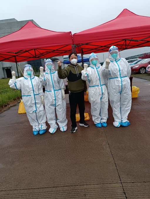 (驾车护送医护人员到衢江区东港各核酸监测点开展核酸检测)