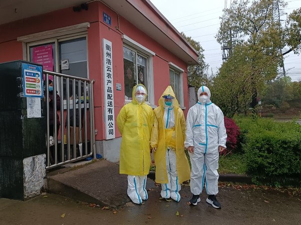 (护送医护人员到衢江区东港各企业挨家挨户为老弱病残上门开展核酸检测)
