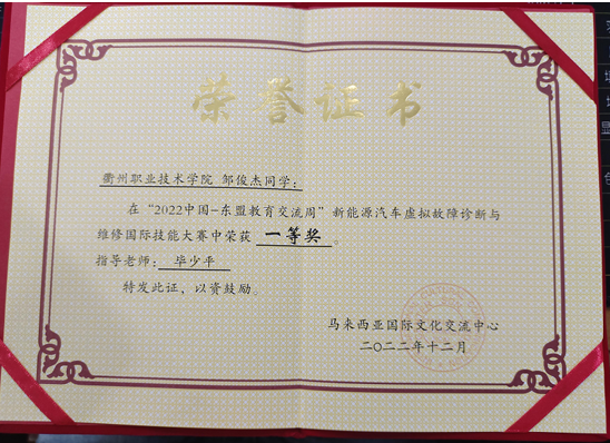 毕少平指导员工获2022年新能源汽车虚拟仿真国际赛项一等奖